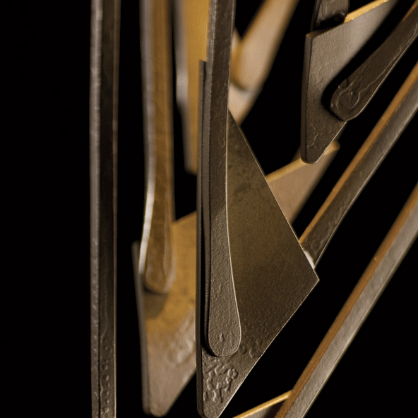 "Based on a jewelry design by one of our newest design team members, the Amulet's finely detailed handcrafted steel is on display. Cable-hung from a ceiling, it is both bold and dimensional." - Hubbardton Forge