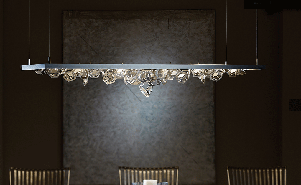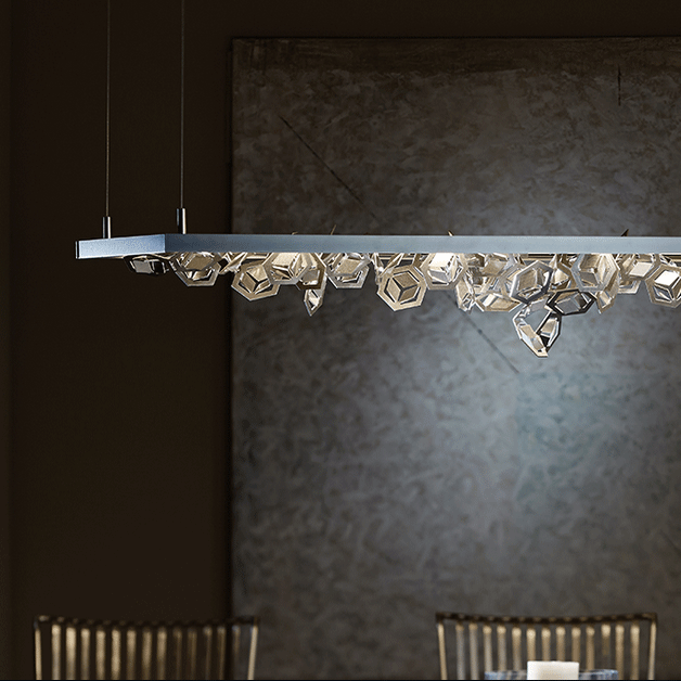 When I first saw the Seasons collection at the Hubbardton Forge showroom the Winter pendant was immediately my absolute favorite of the four. The striking contrast between the frame and brilliant hand forged snowflakes makes the winter theme stand out. "Winter, the most contemporary piece of our Four Seasons features multifaceted polished aluminum snowflakes that create a dramatic display of light and shadow. We offer a choice of separate finishes for the snowflakes and frame. " - Hubbardton Forge
