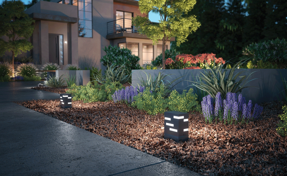 The sleek metal surface is laser-cut with horizontal slots which allow the LED light to shine through an inner white diffuser. The subtle, ambient glow enhances way-finding on paths or in landscape applications. The Revel bollard features a universal driver with built-in surge protection. This unique outdoor light fixtures feature a durable, marine grade powder coat finish available in either Charcoal or Bronze. Revel bollard and path light both feature stainless steel hardware and impact-resistant, UV stabilized frosted acrylic lensing for added durability and stability. IP65 wet listed. L70, 70,000 hours. " - Tech Lighting