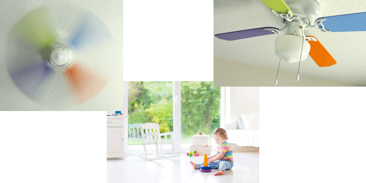 Ideally a nursery has a lot of exposure to natural daylight. Daylight is good for us. Period. At night the nursery needs nice ambient light that gives the room a pleasant atmosphere. Dimmers are important to allow the light intensity to be regulated from soothing to "look-there-is-no-boogieman-under-the-bed." Recessed lights or surface mounted ceiling lights work well for providing ambient light. Only if it is a tiny room will a single center-mounted ceiling light be sufficient, and then only if it holds several bulbs. You'd want to have a fixture you can use to flood the room with light in an emergency. Ceiling fans are really nice for a nursery, but since their main function is to make you feel comfortable they shouldn't be tasked with providing the only illumination for the room as well.